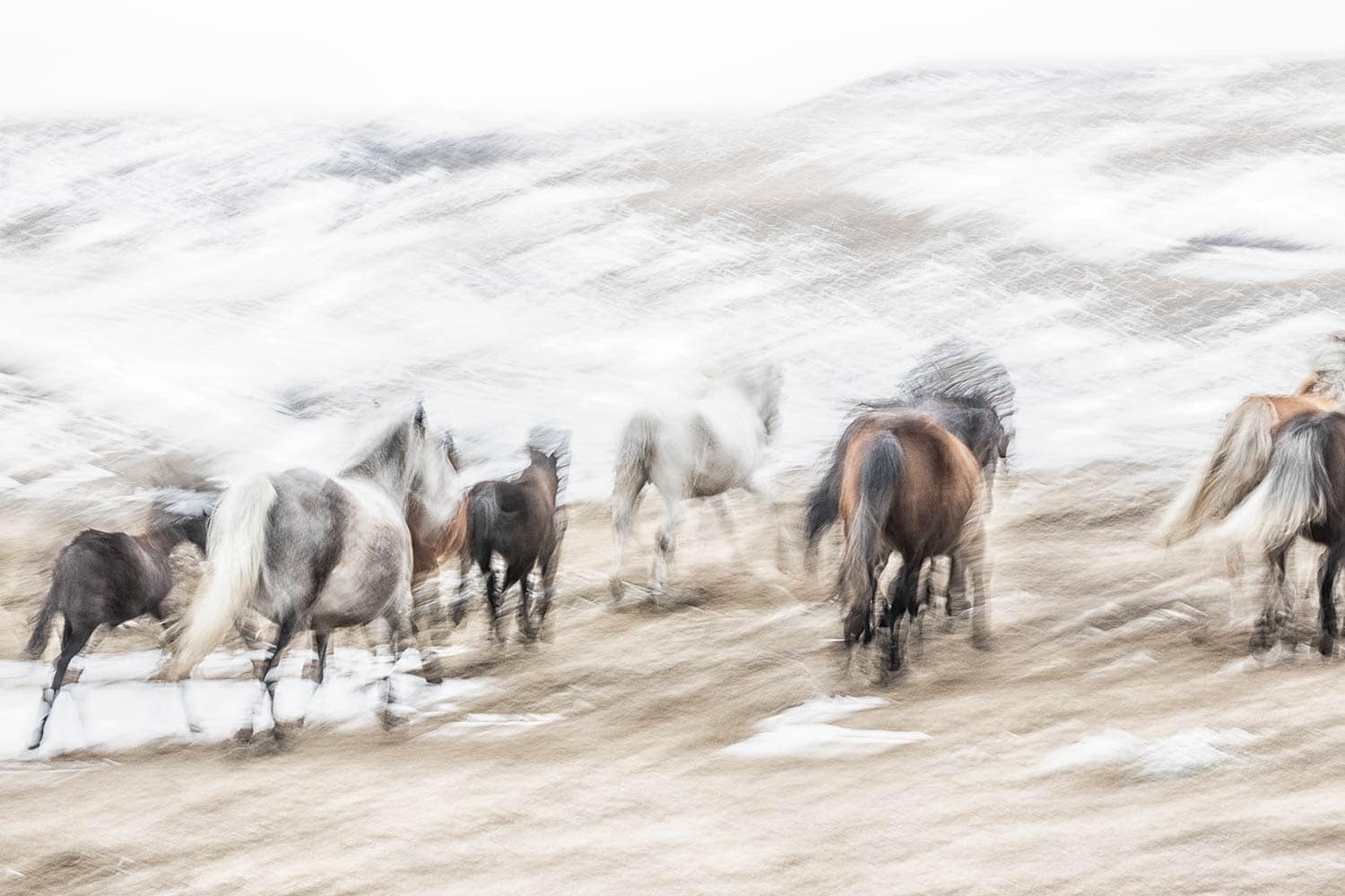 Ennen kotiinlähtöä törmäsin vielä yhteen laumaan. Yhtäkkiä koko lauma otti ja lähti. Tähän kuvaan oli hienoa päättää talvikuvausmatka.